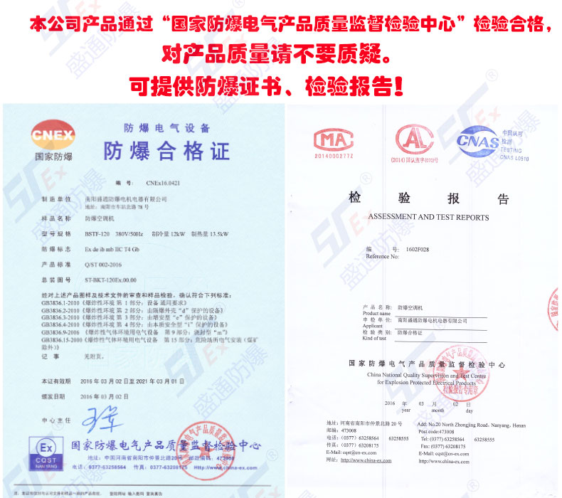 滿足以上四點,基本上可以報出一臺防爆空調多少錢。南陽盛通防爆電機電器有限公司(簡稱盛通防爆)生產的防爆空調嚴格按標準GB3836——2000及IEC標準設計制造,并取得相關監管部門頒發的防爆合格證。