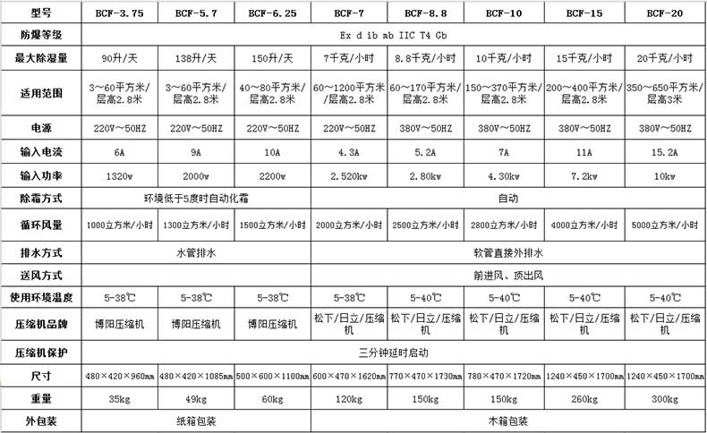 防爆除濕機技術參數: