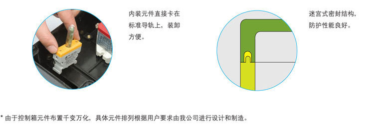 5、內裝元件直接卡在標準的導軌上,元件上的凸起和導軌上的凹槽保證了內置元件安裝在確定位置上;