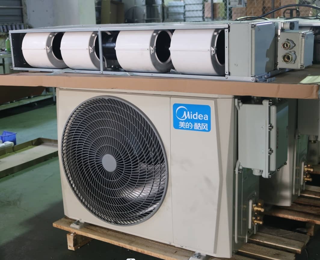 美的3P防爆風管機特點: 1、室內機組采用低噪音設計,在機體內壁帖附了保溫隔音材料,內機風機...